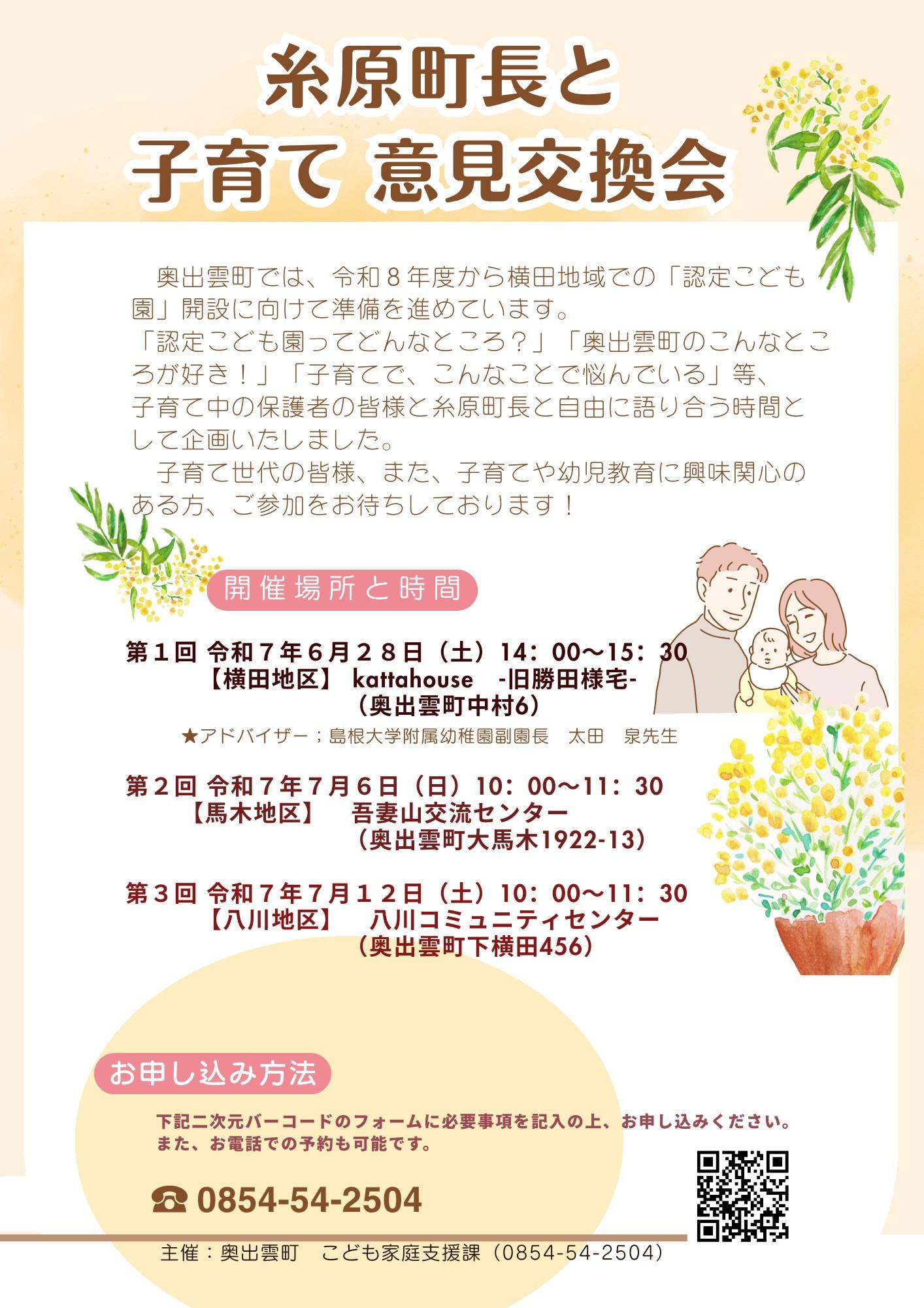 糸原町長と子育てについて、自由に語り合いませんか?