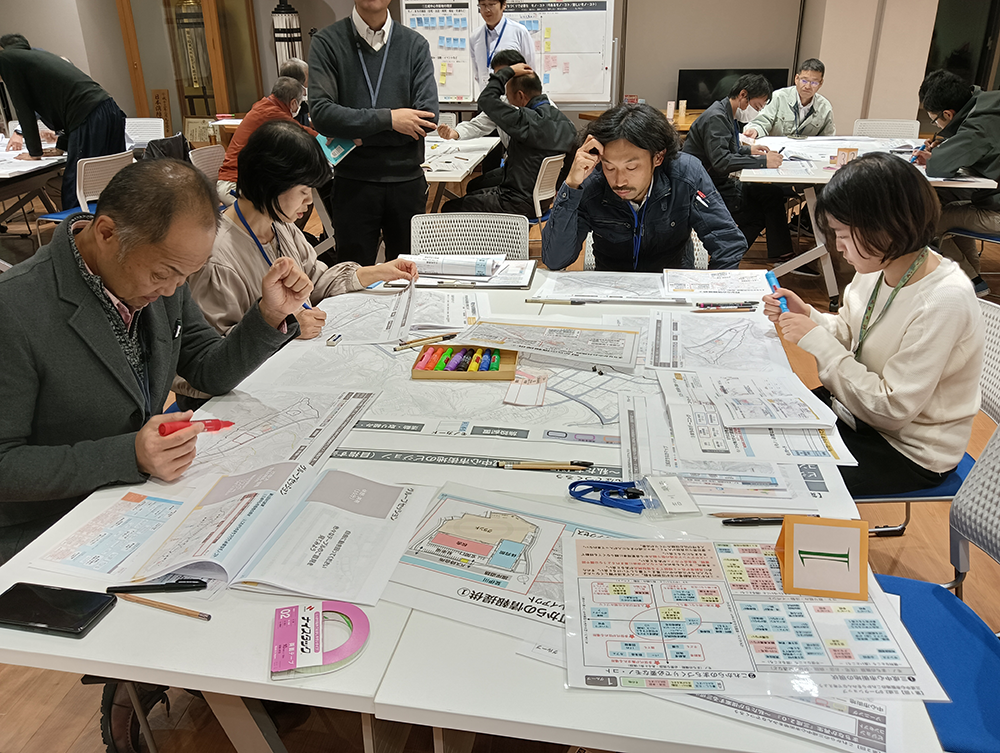 この計画の考えのもと、「三成中心市街地」について、中心市街地に暮らす人だけでなく、町内外の多くの人にとっても魅力的な場所となるよう、町民の皆さんと一緒にワークショップ等を開催し、「三成中心市街地」の課題や今後のまちづくりの方向性について、多くのアイデアやご意見をいただきました。
