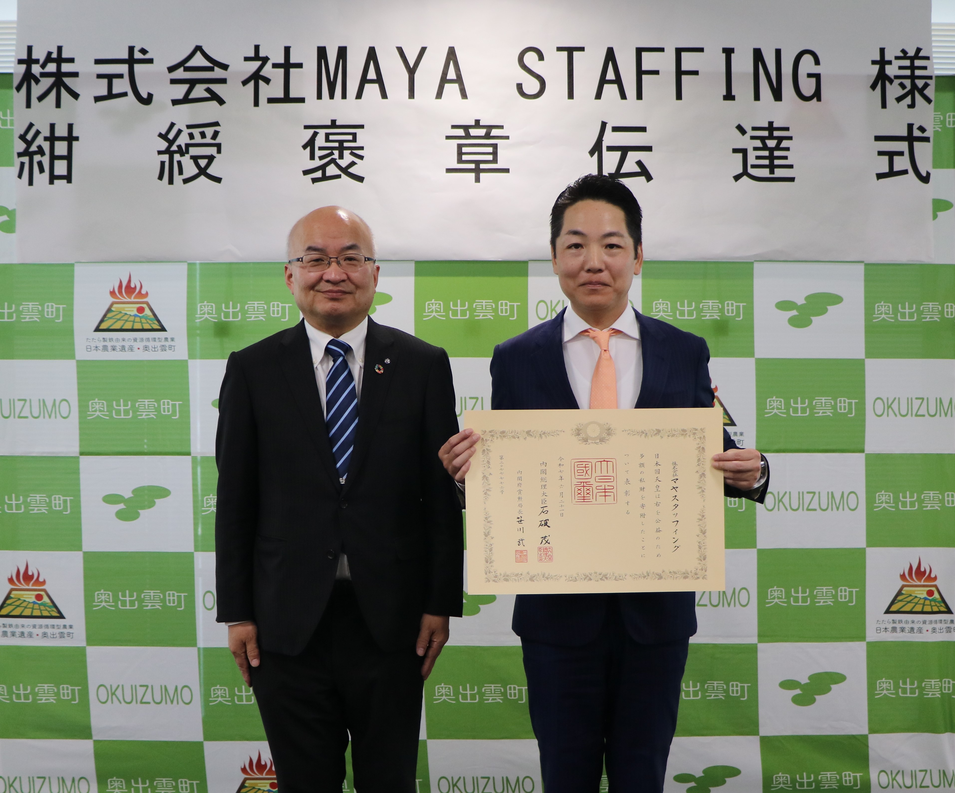株式会社MAYA STAFFING様が紺綬褒章を受章されました
