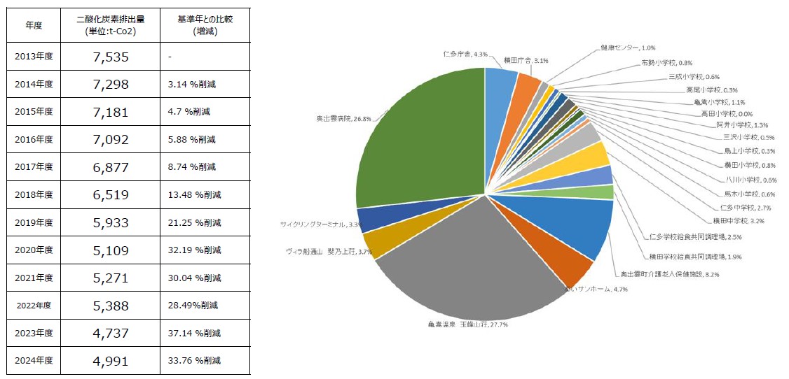 本町の対象施設における2024年度の二酸化炭素排出量を次のとおり公表します。